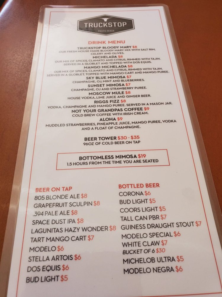 Truckstop, located in San Diego, offers a variety of dining experiences with its casual and trendy atmosphere. The restaurant provides a range of vegan and limited vegetarian options, making it inclusive for all dietary preferences. The menu features classic breakfast and lunch items, including the popular Carne Asada Breakfast Burrito and the Truckstop Smashed Onion Burger. With amenities like outdoor seating, free Wi-Fi, and bottomless mimosas, customers can enjoy a relaxing meal by the beach. Reviews praise the friendly staff and quick service, making Truckstop a favorite spot for brunch and gatherings. The strong cocktails and generous portions add to the overall dining experience, making Truckstop a must-visit destination in the Pacific Beach area.